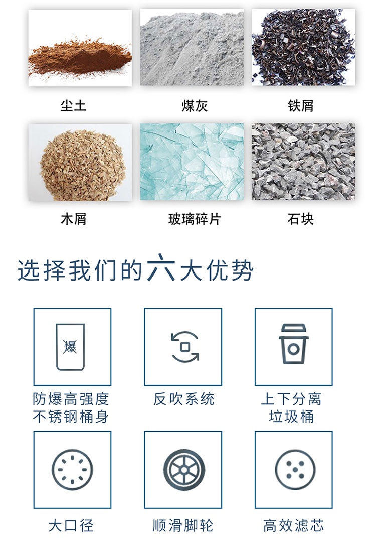 適用各類粉塵顆粒,吸力發(fā),不留死角,工業(yè)粉塵、金屬切屑、小石子、粉末殘渣、碎紙屑、細(xì)小顆粒全拿下